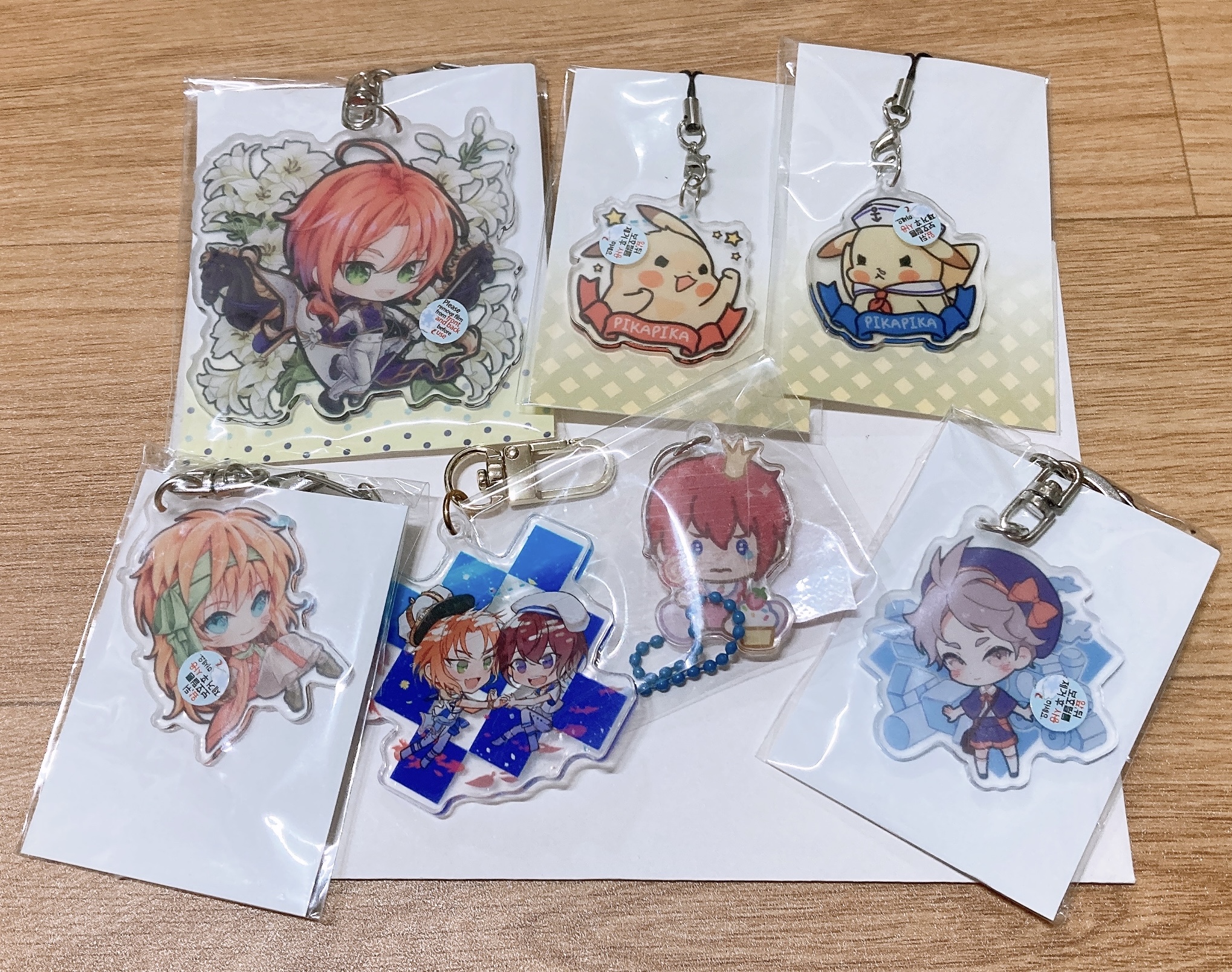 기본적으로 키링은 마땅히 달 곳이 없어서 구경만 하고 사진 말자는 주의인데, 이게 웬걸. 막상 가보니까 너무 예쁜게 많네...? 허허 이것 참^^; 때문에 지나가면서 예쁜게 보인다 싶으면 일단 현금부터 꺼내고 봤다ㅎㅎ 일단 주장르인 앙스타부터 시작해서 하이큐, 포켓몬, 새벽의 연화 등등 일단 예쁜게 보이면 사고 봤습니다... 세상은 넓고 예쁜 건 참 많더라구여😉